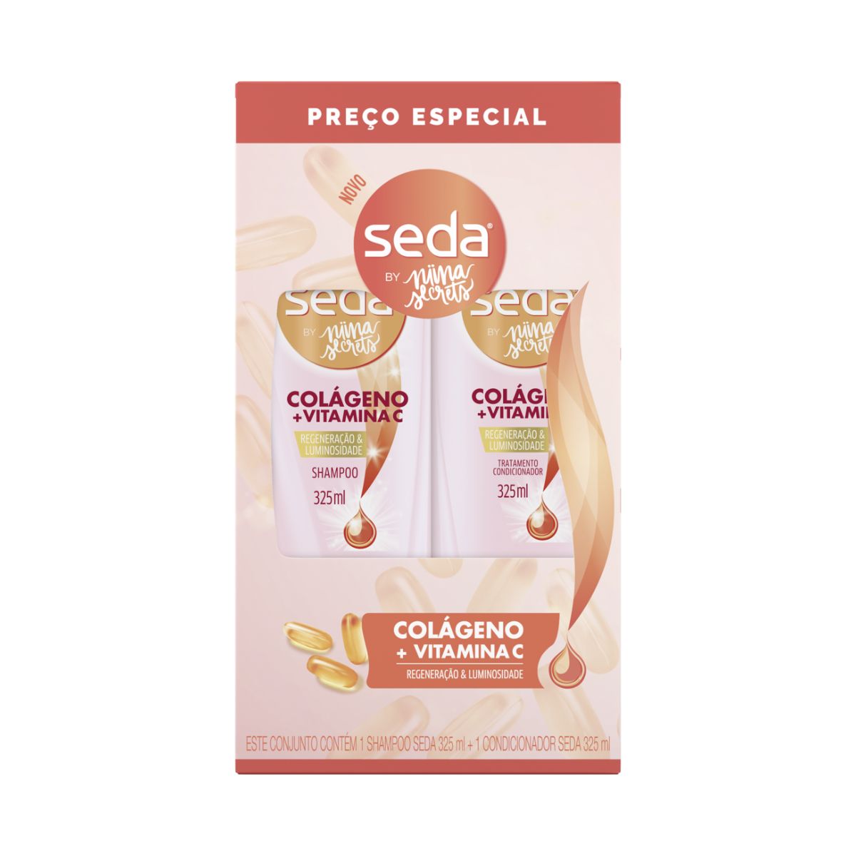 KIT SHAMPOO 300ML + CONDICIONADOR 190ML SEDA BY NIINA SECRETS COLÁGENO + VITAMINA C