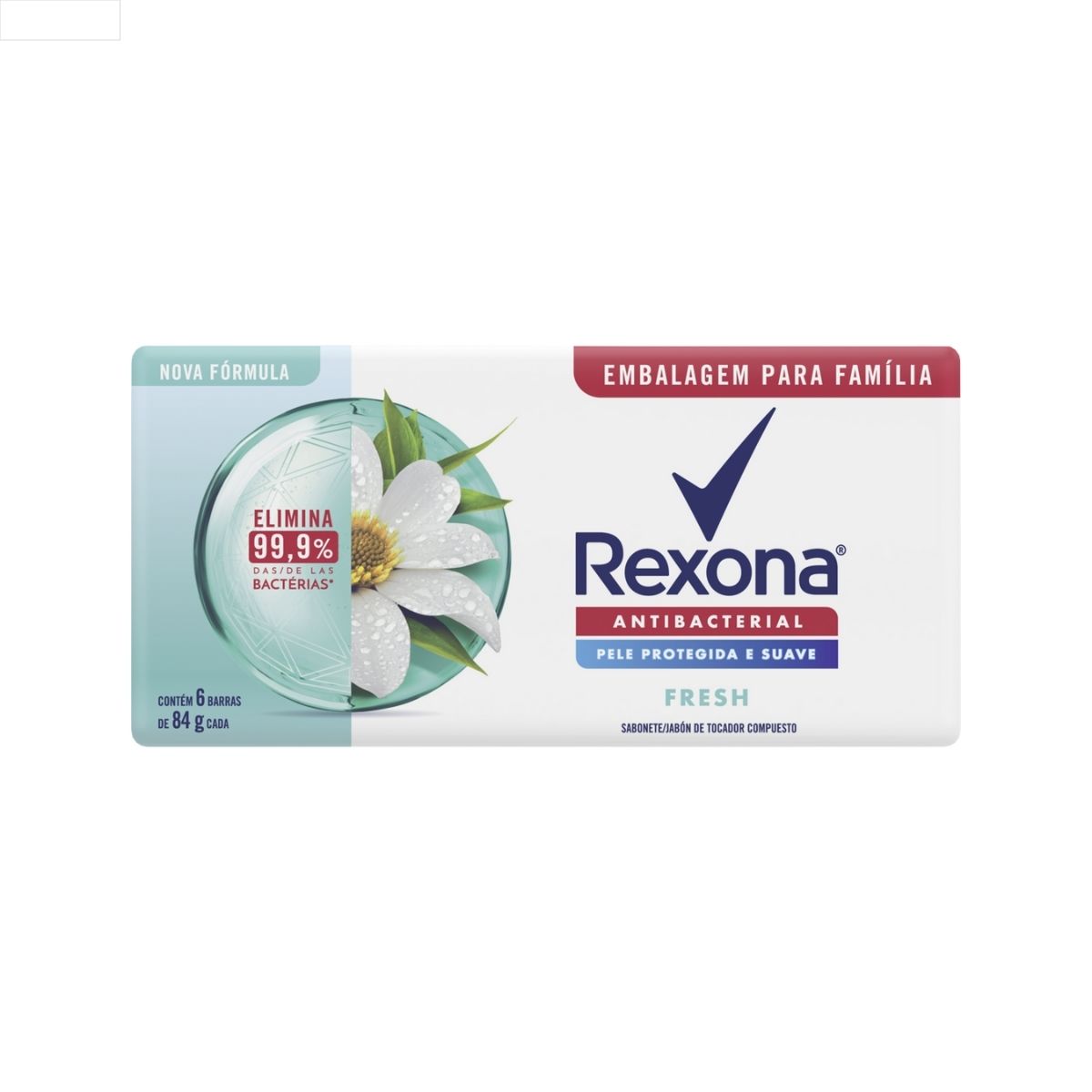 PACK SABONETE BARRA ANTIBACTERIAL FRESH REXONA ENVOLTÓRIO 6 UNIDADES 84G CADA EMBALAGEM FAMÍLIA